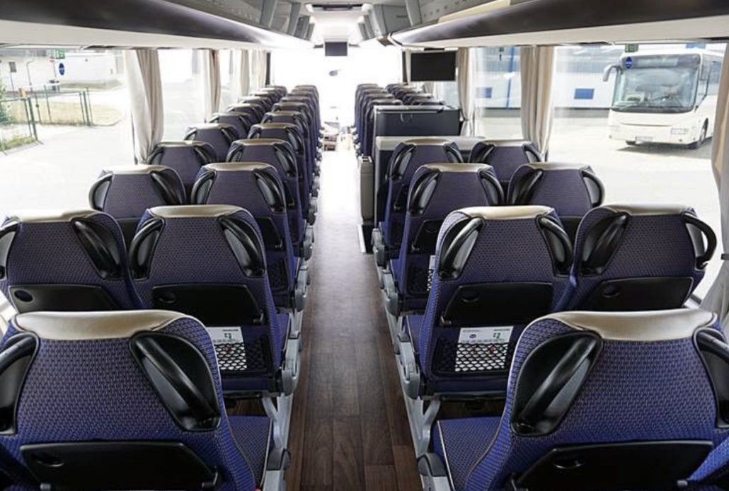 - Комфорт. Сучасні автобуси оснащені кондиціонерами, Wi-Fi, розетками, зручними сидіннями та туалетами.